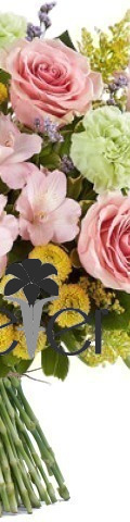 Perfectly hand-tied yet designed to look like a handpicked bunch, our Vintage Garden Bouquet appeals to mums of every age. This popular flower arrangement for Mother's Day and Birthdays includes a fragrant display of pink roses, green carnations, pink alstroemeria, yellow chrysanthemums, and yellow Limonium in your choice of a glass vase or bouquet wrapping.
