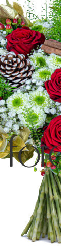 Celebrate the most wonderful time of the year with our Nutcracker Christmas Bouquet. Handcrafted by our in-house florists, this Christmas flower arrangement includes velvety red roses, wintery white chrysanthemums, traditional pinecones, fragrant cinnamon sticks, and sprigs of gypsophila for a touch of festive frosting. With green and gold foliage and your choice of wrapping, this Christmas flower bouquet is full of seasonal charm. Choose our Christmas flower delivery service, and we’ll deliver it directly to the recipient’s door.